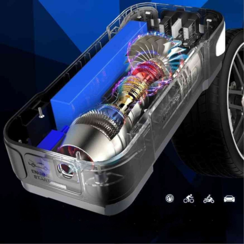 هذا المشغل الذكي والمحمول يعيد الحياة إلى سيارتك في ثوانٍ. كما أنه يدمج ضاغط هواء لإعادة نفخ إطاراتك أينما كنت. مصمم للسلامة والعملية، يجمع بين القوة والمرونة والموثوقية في جهاز واحد.