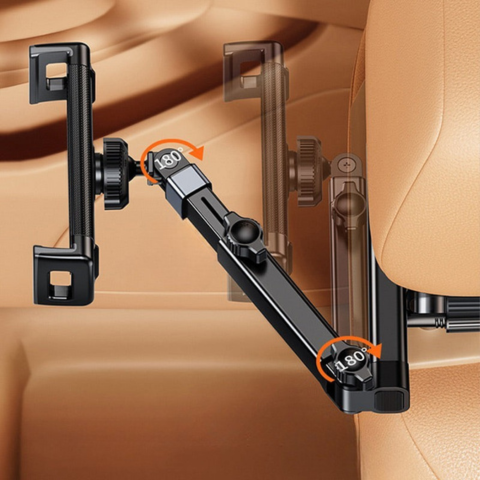 Denne telefon- og tablet-holder til bilen tilbyder en 360° rotation for en optimal synsvinkel. Dens udtrækkelige arm gør det muligt at justere afstanden efter dine præferencer. Nem at installere uden værktøj, den passer til de fleste nakkestøtter og enheder.