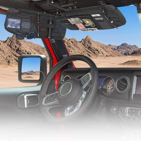 Speziell für die Wrangler JL und JT, die zwischen 2018 und 2023 produziert wurden, wurde dieser Sonnenblenden-Organizer entwickelt, um Ihre wichtigen Accessoires perfekt organisiert und leicht zugänglich zu halten. Seine schnelle, werkzeuglose Installation und das unauffällige Design fügen sich harmonisch in den Innenraum ein.