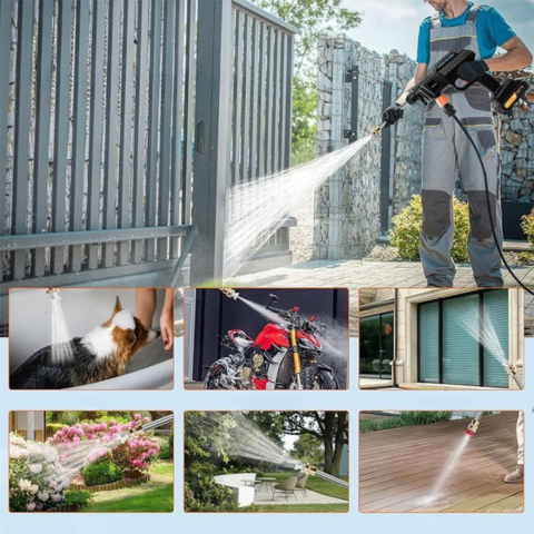 Tämä kannettava painepesuri helpottaa autosi pesemistä sen 6-in-1 suuttimen ansiosta, joka mukautuu kaikkiin tarpeisiisi. Kevyt ja käytännöllinen, se mahdollistaa tehokkaan puhdistuksen vaivatta, olipa kyseessä kori, vanteet tai vaikeasti saavutettavat nurkat.