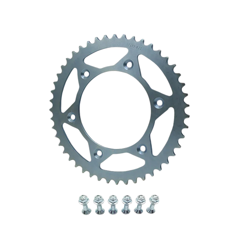 Tämä takakruunu on erityisesti suunniteltu tarjoamaan kestävyyttä ja tehokkuutta matkoillasi tai motocross-sessioissasi. Se takaa sujuvan ja kestävän voimansiirron, samalla kun se varmistaa helpon ja nopean asennuksen. Ihanteellinen valinta parantamaan moottoripyöräsi tehoa ja luotettavuutta.