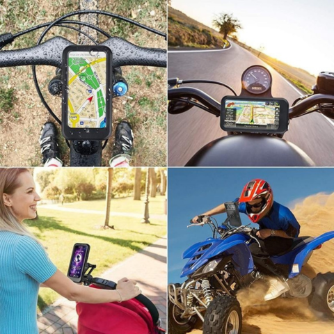Ce support protège efficacement votre téléphone sous la pluie tout en assurant une recharge rapide pendant vos trajets. Facile à fixer sur le guidon, il offre une tenue stable et un accès tactile direct à l’écran.
