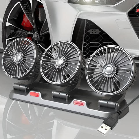 Deze mini ventilator met drievoudige kop zorgt voor krachtige luchtcirculatie in het hele interieur. Elke kop is draaibaar om de luchtstroom precies af te stemmen op de behoeften van de passagiers. Compact en opvouwbaar, hij past gemakkelijk in elk voertuig.