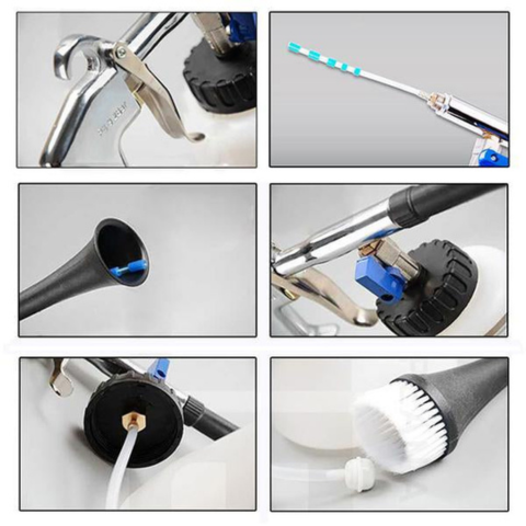 Ten ciśnieniowy czyścik umożliwia szybkie i skuteczne czyszczenie wnętrza i zewnętrza pojazdu. Jego stożkowa końcówka w połączeniu z obrotowym działaniem celuje w osadzone brud. Kompatybilny z każdą sprężarką powietrza, łatwo dociera do trudno dostępnych miejsc.